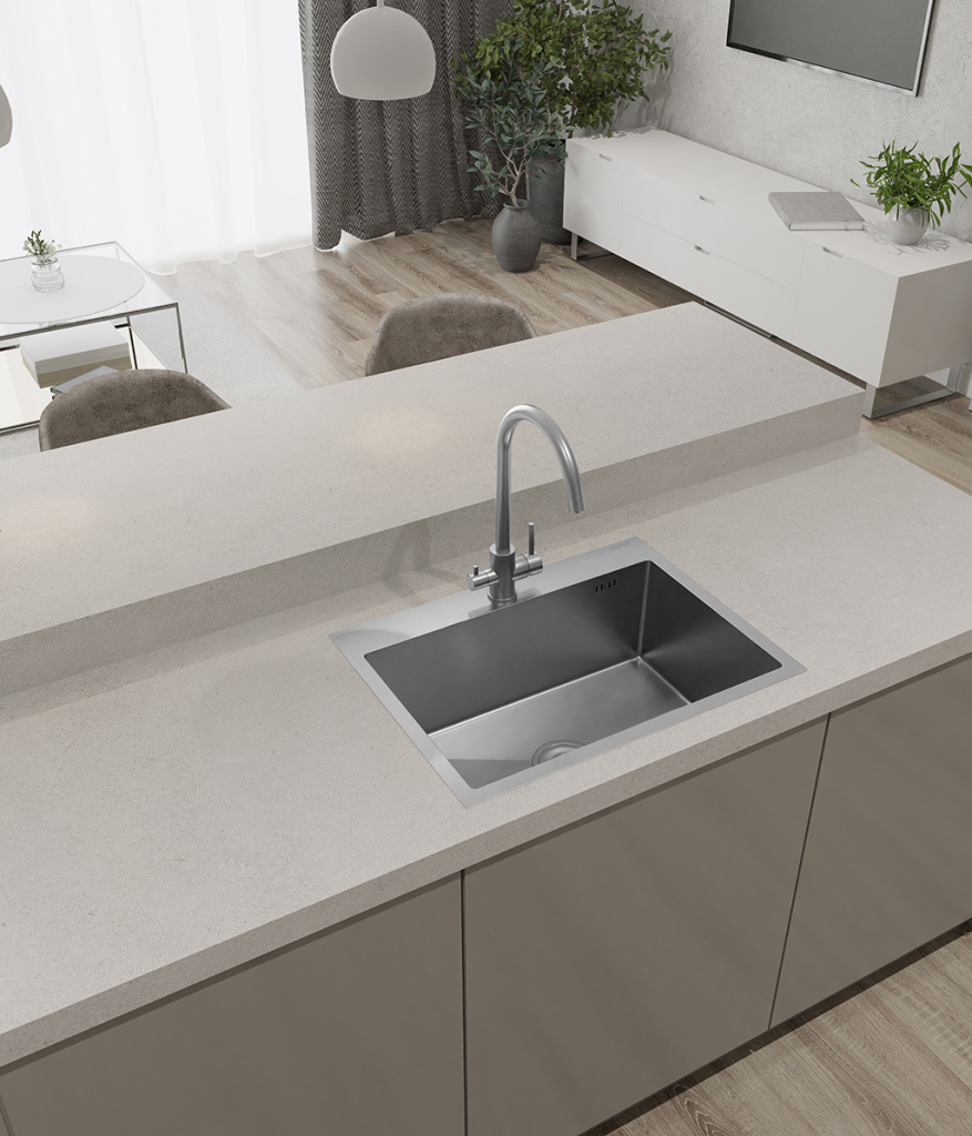 Устойчивая к перепадам температур поверхность с деликатным матовым отблеском расставит акценты и добавит презентабельности окружающему пространству. Технологичный рельеф дна с уклоном к стоковому отверстию препятствует застаиванию воды и ускоряет ее стекание в канализацию. Врезной метод монтажа подчеркивает визуальное единство со столешницей, формируя стильную и элегантную рабочую зону на Вашей кухне. В комплектацию изделия входит сливная арматура и крепеж.