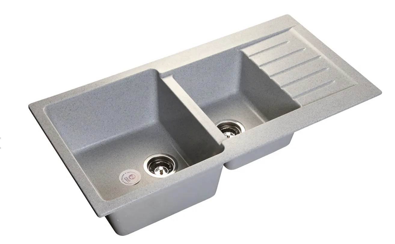 PRACTIK 980KL. Эта модель подходит для просторных помещений и людей, которые проводят на кухне много времени. Она имеет две чаши и небольшое, но функциональное крыло. В одной чаше можно замачивать и мыть посуду, а в другой – параллельно ополаскивать ее. Также вторая чаша подойдет для размораживания продуктов. На крыле можно разместить только что вымытую посуду, фрукты и овощи, чтобы с них стекала вода. Модель представлена в 9 оттенках, благодаря чему вы сможете подобрать подходящий вариант под любой интерьер. Правильная форма привносит ощущение баланса в помещение. Благодаря такой мойке рабочая зона будет смотреться особенно аккуратно и стильно.