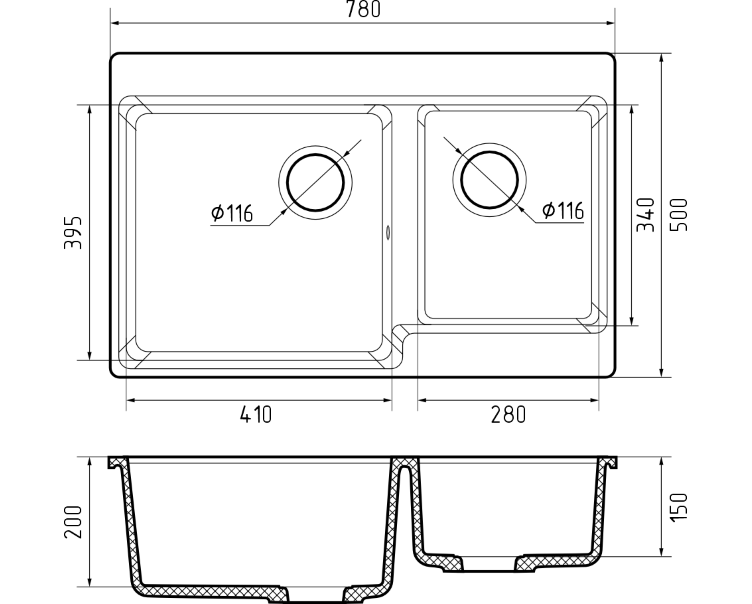 Кухонная мойка GranFest Композит LEVEL 780K изготовлена из безопасных и экологически чистых материалов, что гарантирует ее надежность и долговечность.