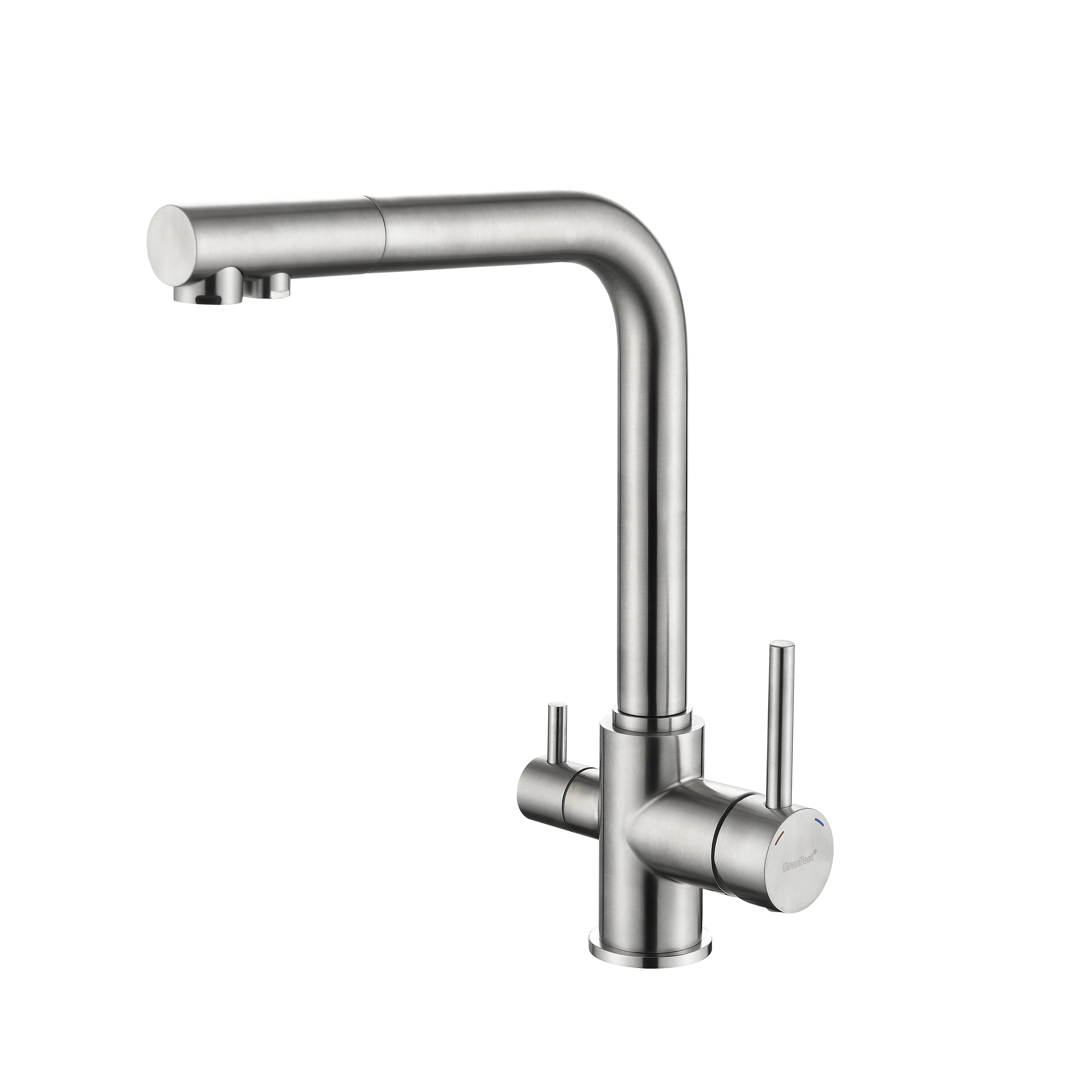 GranFest Композит Смеситель для кухни Г-обр. с краном питьевой воды D-35мм нержавейка арт.