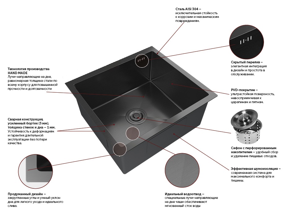GRANFEST METAL 5344 PVD графит - подстольный монтаж мойки позволяет создать уникальный и функциональный интерьер.