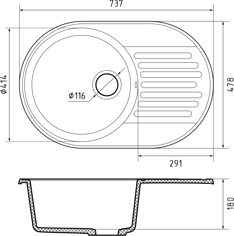 Мойка для кухни GranFest Композит RONDO 750L