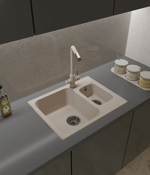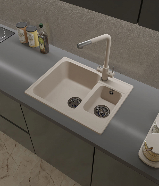 GRANFEST Мойка QUARZ 09 1,5-чаши 620*480мм белый арт.GF-Z-