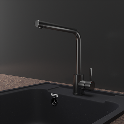 Поверхность смесителя окрашена в цвета кварцевых моек GranFest QUARZ.