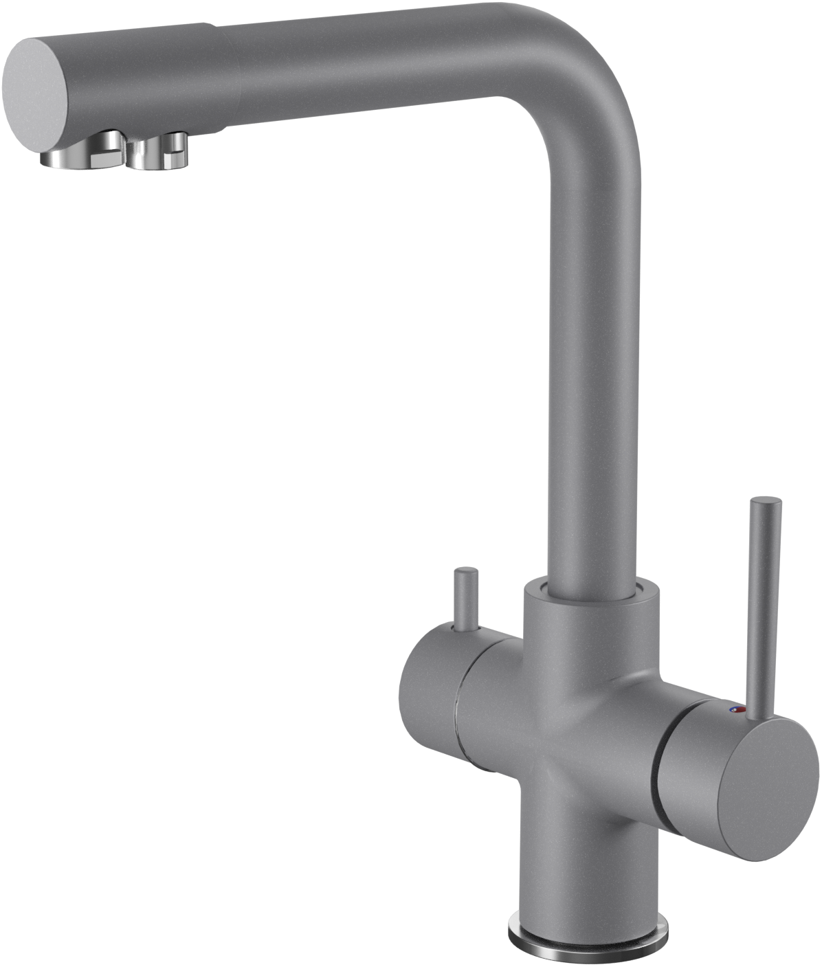 Поверхность смесителя выполнена в благородных оттенках кварцевых моек GranFest URBAN и GranFest QUARZ, создавая эффект гармоничного сочетания с любым интерьером. Г-образная форма излива не только добавляет эргономичности, но и придаёт кухне лаконичный, стильный акцент.