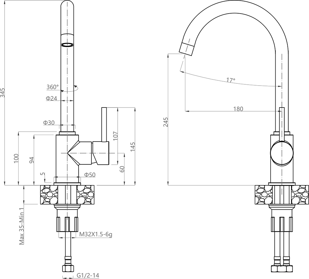 Поверхность смесителя окрашена в цвета мраморных моек GranFest.